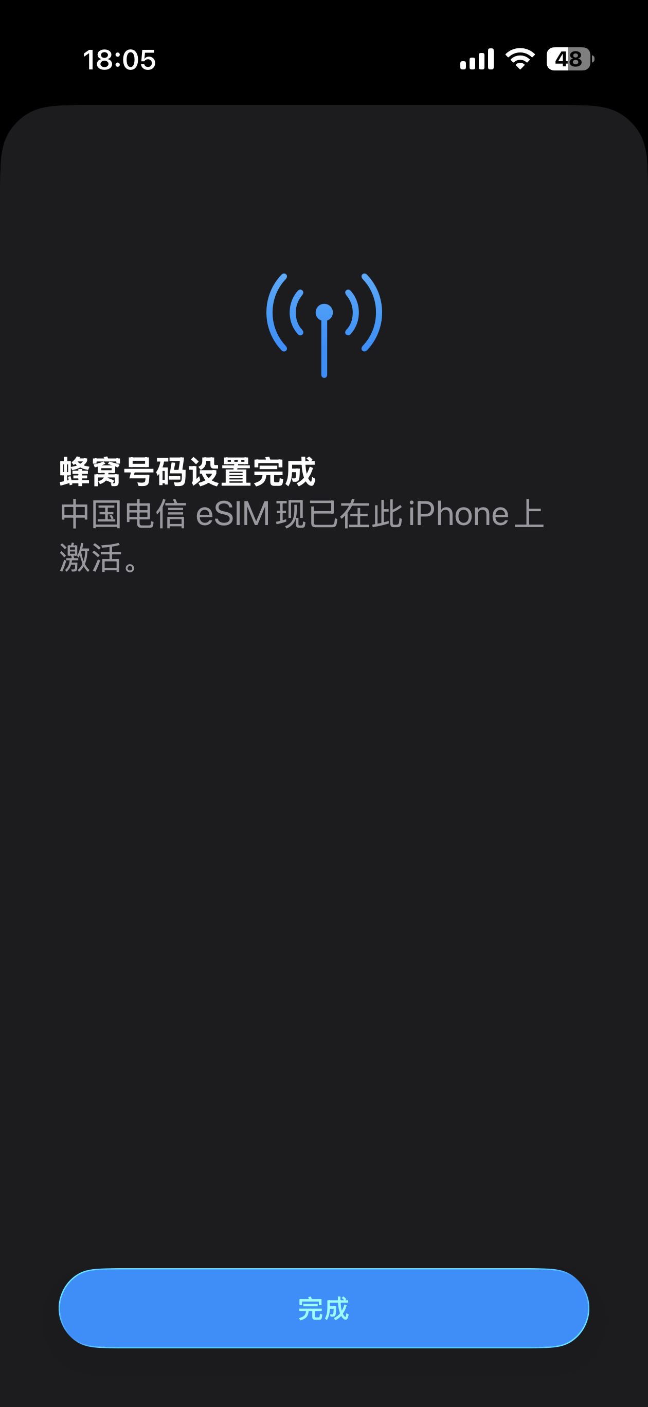 整个办理 eSIM 的过程还算顺利,不过有一个小插曲,由于我的手机号是我爸名下电信宽带的副卡,所以用我的身份证去办理是不行的,把我爸叫过来办理才可以。